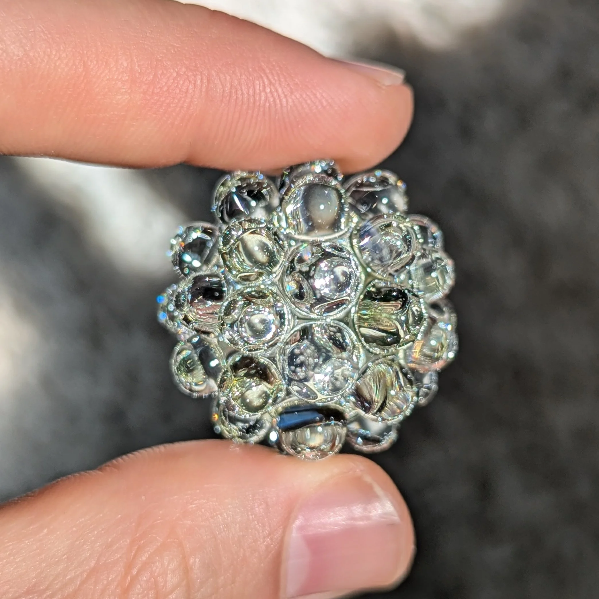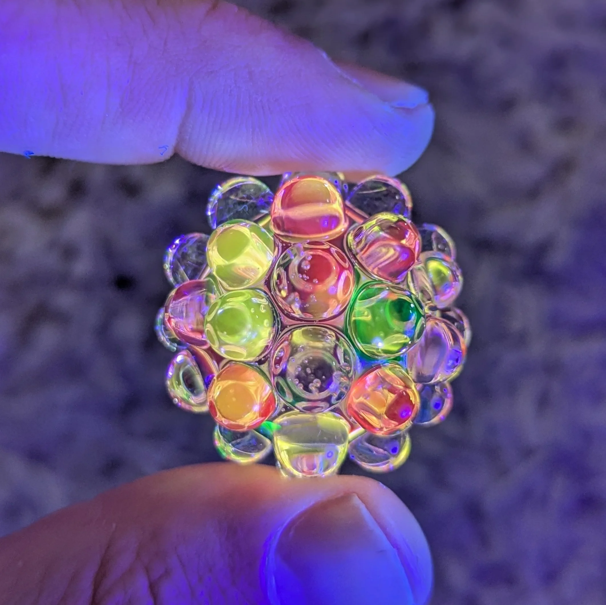 Multi color UV core with 44 clear hobnails.