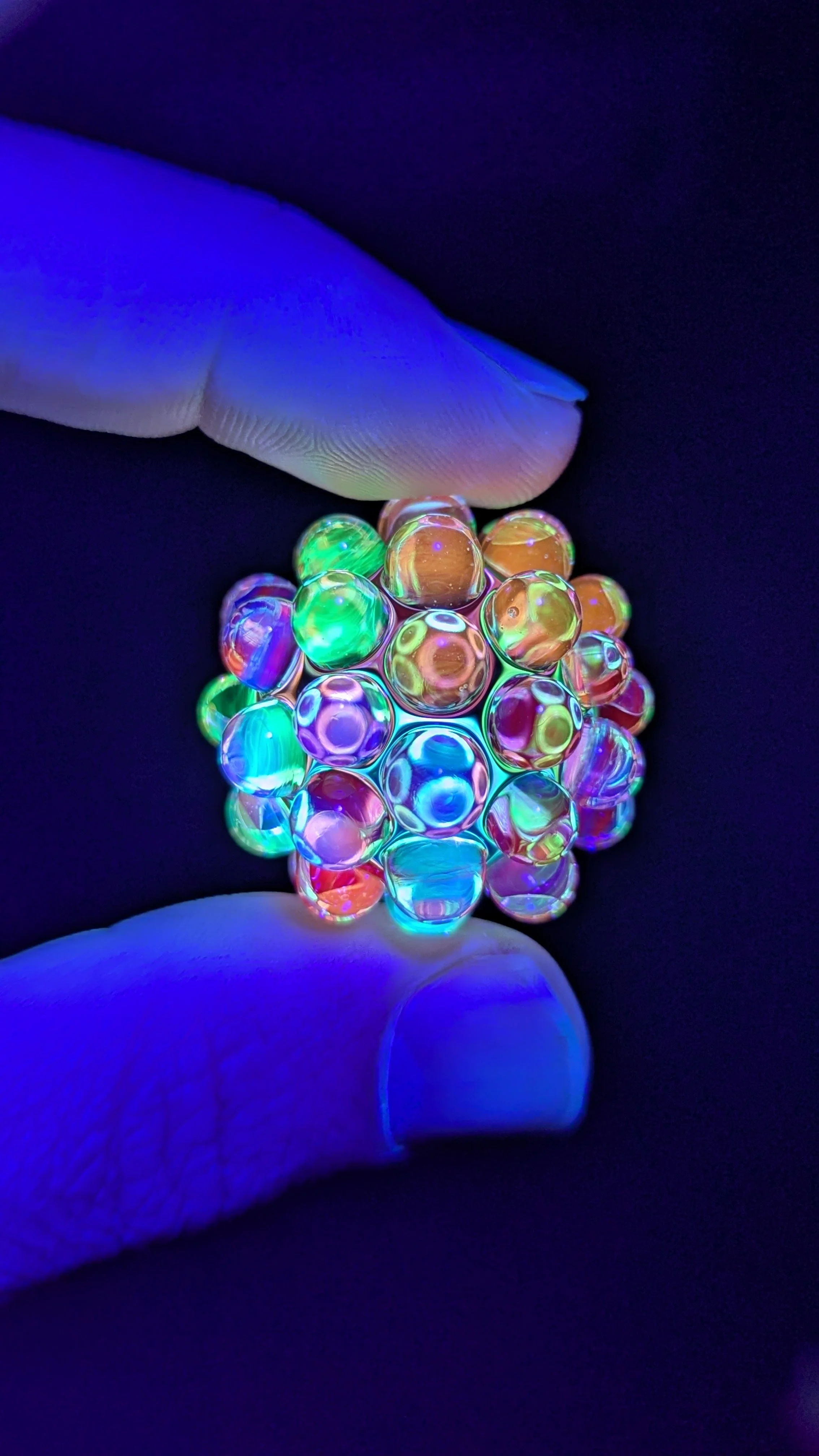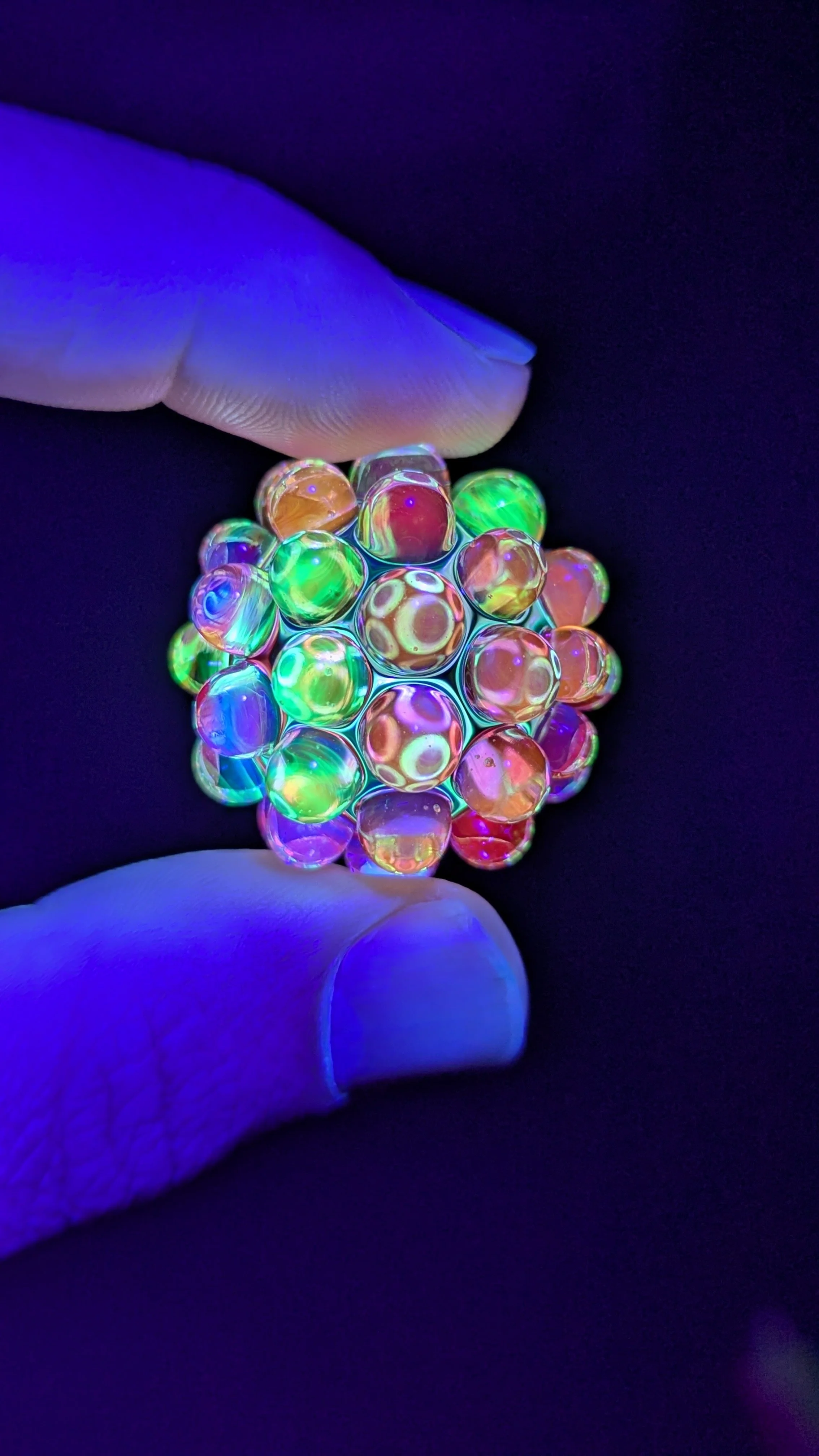 Multicolor UV core with 44 mostly clear hobnails. I used some hand mixed UV colors to create some unique shades.
