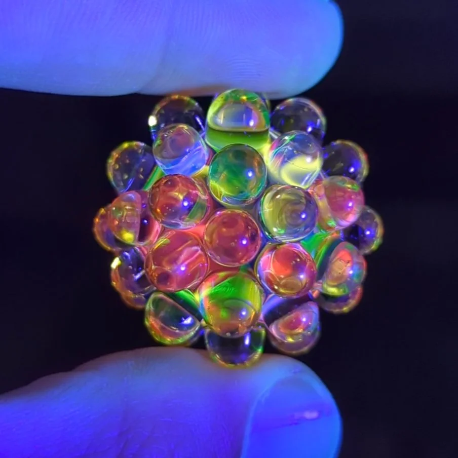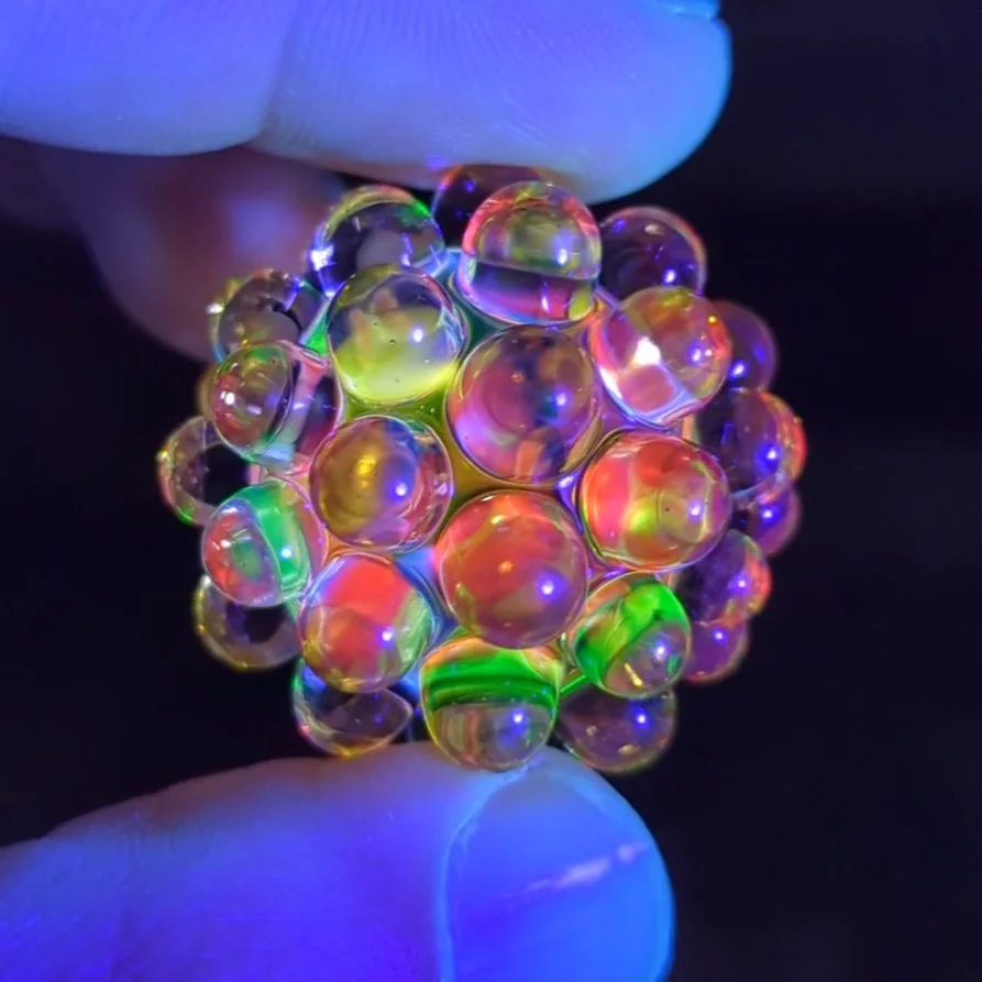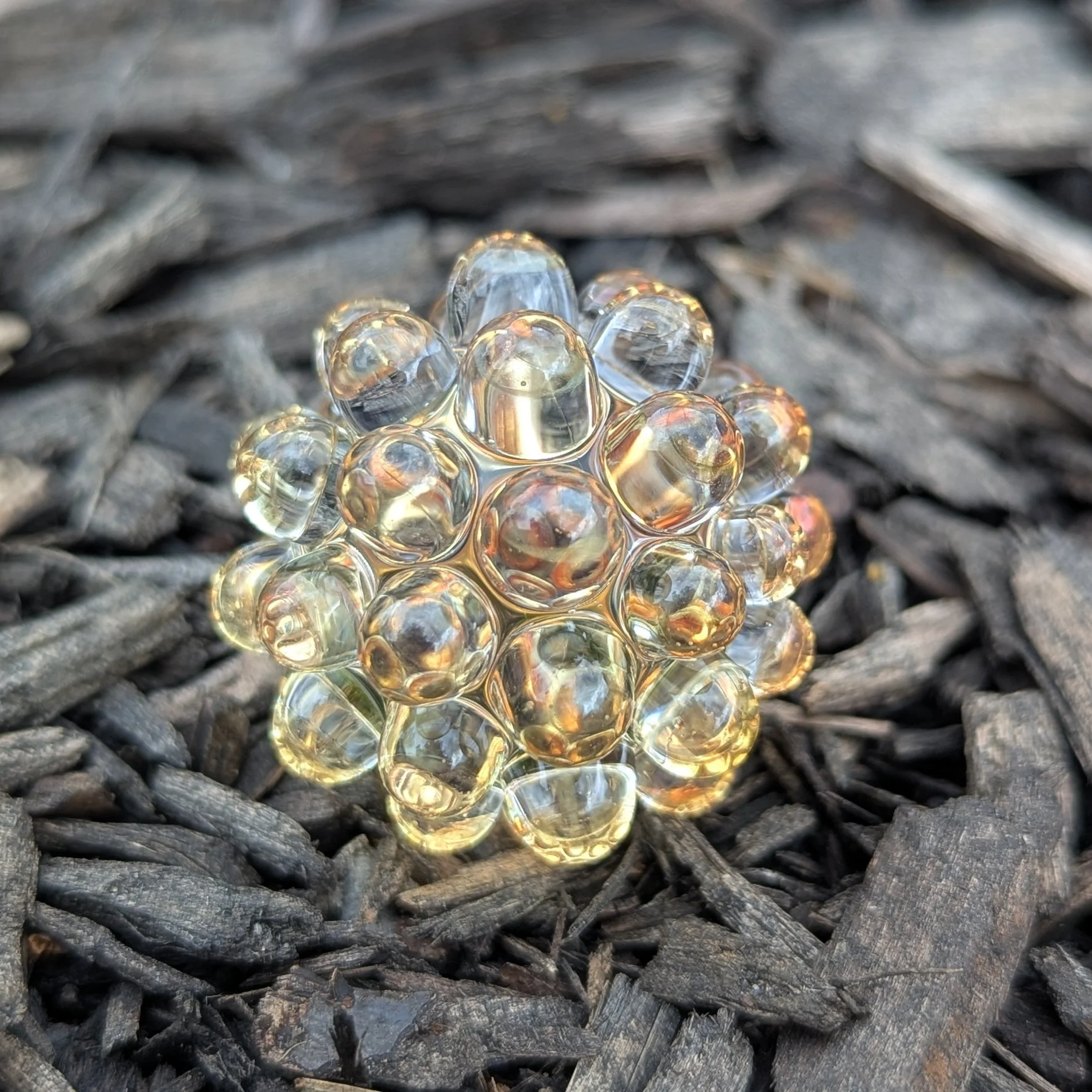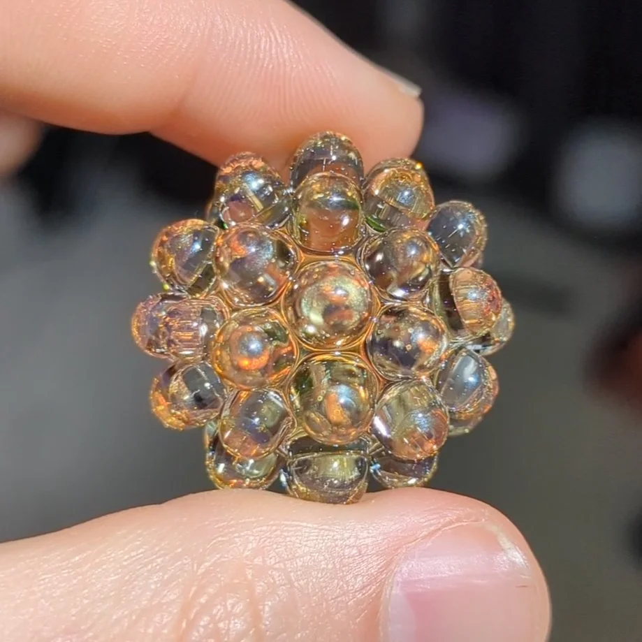 Multicolor UV core with 44 clear hobnails layered with a swirling shimmer glass. This one has a more subtle shimmer which looks really nice in the sunlight and looks like a nice champagne color.